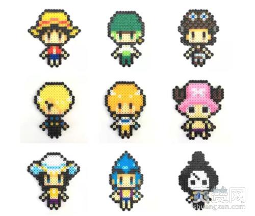 其次是拼豆,一个个小豆子在模板上拼好,然后熨烫,完成!草帽一伙9只~(两年前)