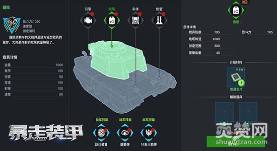 在强化界面中,玩家可以对鼬鼠号装甲的的三个技能进行强化升级,并且还能对引擎、炮塔、车体、炮管四个部件分别升级,大幅提升装甲战斗值。