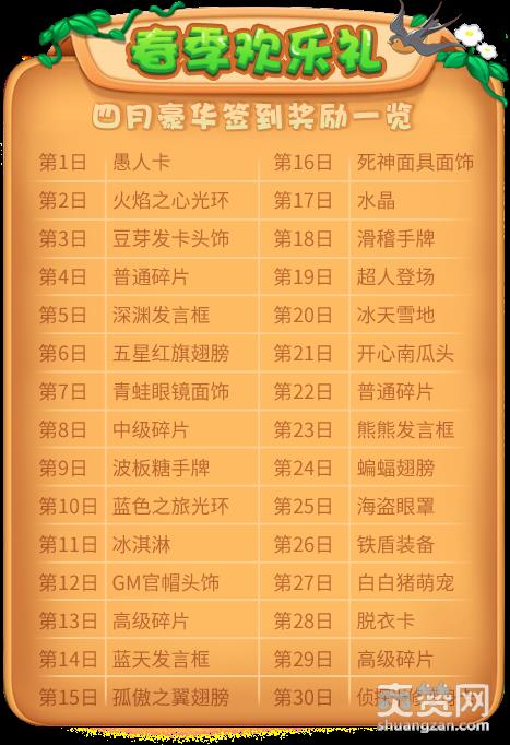2019年4月豪华签到奖励一览