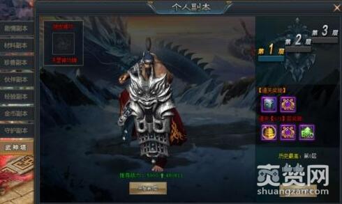 找到923yx《武动苍穹》主界面左上角的副本大厅,即可看到武神塔,点击即可进入。在武神塔中,大家不仅有机会获得各职业武器,还可以获得大量经验,让大家战力飙升!成功通关后,大家还可以使用一键扫荡,获得大量奖励。