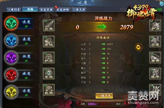 淬炼也分为五个心魔单独淬炼,点击标签切换淬炼的心魔对象,淬炼达到一定等级会激活淬炼共鸣,淬炼材料通过心魔boss产出。