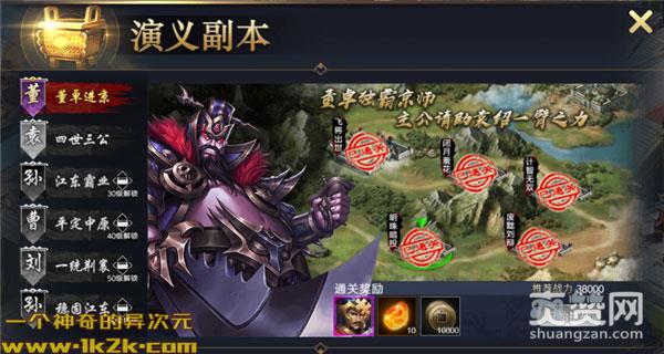 章节的顺序越靠后,挑战的难度就越高。如果主公想要打通演义副本的全部关卡的话,至少需要达到23万的战力。在挑战“董卓进京”之后的演义副本时,建议主公用上前面章节所得的高级武将,这样挑战的难度就会减小很多。