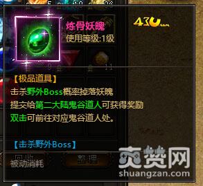 43u《灭神》炼骨妖魄是通过击杀野外BOSS获得的,掉落的几率比较低,但是玩家通 过大量击杀BOSS,还是可以收集到不少的。获得炼骨妖魄后,玩家可以到第二大陆的鬼谷 道人处使用这个道具去兑换奖励。