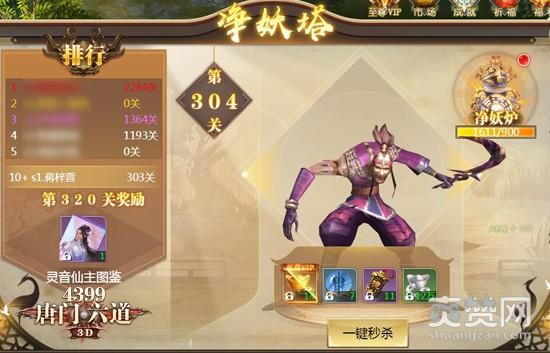 净妖塔在《4399唐门六道3D》中是一个十分重要的玩法。这是一个爬塔闯关的活动,随着玩家战力的提升,可以挑战更高更难的关卡,通过通关到一定层级,来解锁游戏中的各大系统。所以,净妖塔对于《4399唐门六道3D》的玩家来说是一个十分核心的玩法,想激活更多功能,就必须努力提升战力来闯关哦!