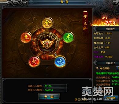 想要提升五行的等级,需要消耗一定的五行精魄,每天可消耗角色经验兑换5次精魄(3次免费和2次购买次数)。