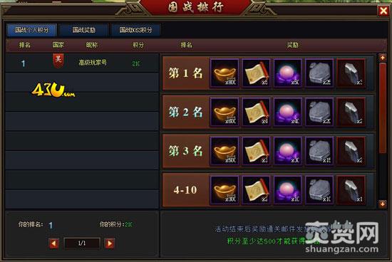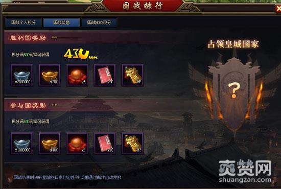 43u《龙腾战国》国战的开启等级是55级,参与的玩家主要可以从中获得绑元、银元、兵令等道具。国战时间是每天的8:00-20:30,其中8:00-20:00为国战备战时间,每小时积分上增增长500。20:00-20:30为国战决战时间,积分无上限。