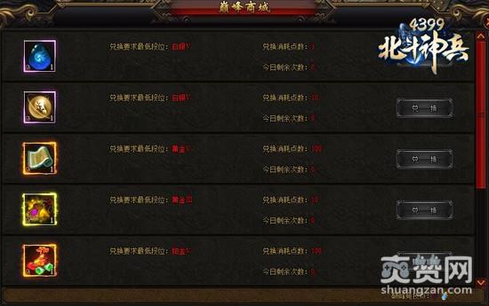 白银及以上段位获胜、失败和平局均可获得巅峰竞技点。巅峰竞技点可以在巅峰商城中兑换各种道具。