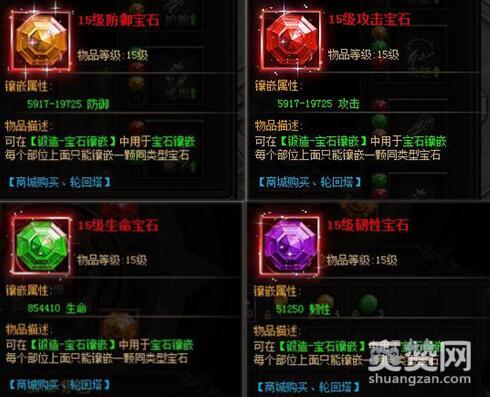 这些宝石则可以通过两种方式获取,一种是轮回塔,达到特定的等级就可以挑战。不仅可以获得宝石,还能获得大量元宝及珍稀资源。另一种就是商城购买,只要有足够的钻石即可。拥有足够的宝石后,大家即可将它们镶嵌在装备上啦!