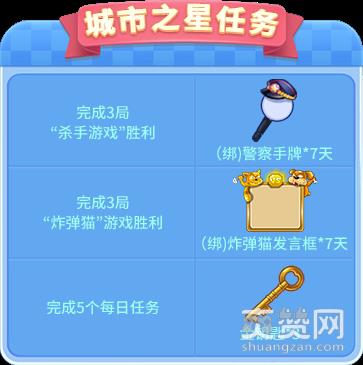 5.城市之星任务中,杀手游戏不限制人数和版本,炸弹猫游戏需至少5人或以上。