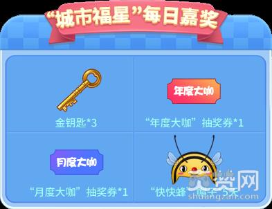“年度大咖”抽奖券:领取“城市福星”每日嘉奖即可获得,在整个活动期间均有效。活动结束后,将会从所有“年度大咖”抽奖券中抽取3位幸运玩家,赠送“超级大咖”365天资格!