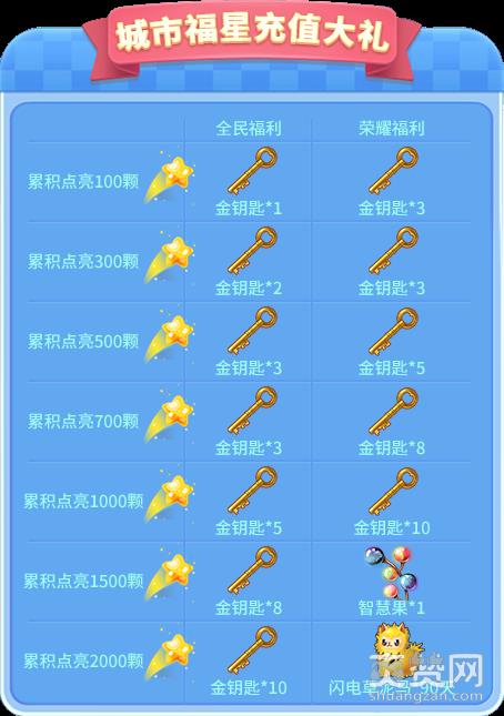 福星驾到,豪礼送不停!活动期间充值任意金额,即可点亮一颗“城市福星”,领取每日嘉奖!