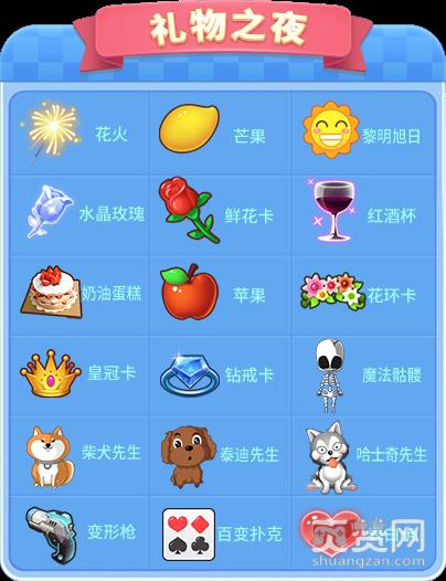 宁静与祥和属于静谧的夜晚,礼物和祝福属于狂欢的夜晚!活动期间,每天15:00-17:00,21:00-23:00期间,在12人及以上游戏房中,每一局游戏的夜晚有机会在屏幕出现漂浮“礼盒标志”,点击即可随机获得一份绑定礼物!