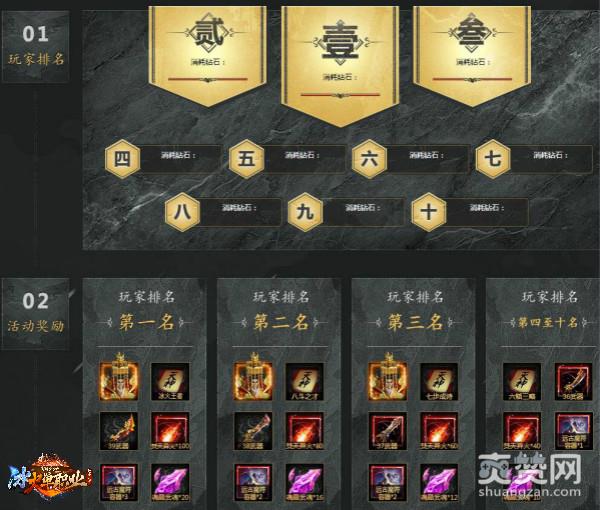 2019年4月23日-4月25日活动期间,消费总额满30万钻石的玩家(前十名)将把自己的名字载入“冰火单职业名人堂”史册,并获得丰厚的奖励;活动期间玩家消费总额满30万钻石(前十名以外)也能获得参与奖的丰厚奖励哦!