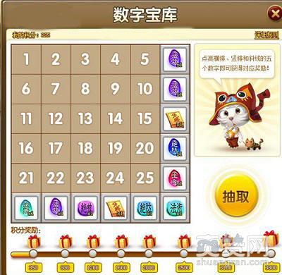 萝卜玩《神仙道》数字宝库活动是需要达到一定积分获取奖励的,具体玩法小编来给大家分享一下吧!每次抽取数字可以获得对应的积分奖励和随机奖励,每次抽取的数字不重复;点亮横排、纵排、斜排的5个数字均可获得对应奖励;每天可花费铜钱抽取数字5次,之后每次需花费50元宝抽取;使用元宝抽取有概率抽到点亮2和数字;每天最多可以完全点亮数字宝库3次。