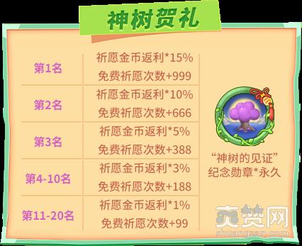 神奇的祈愿神树再次苏醒,生命魔法的强烈能量充满了整座精灵群岛!活动期间,每使用金币购买一份“绿芽”,即可参与“祈愿之星排行榜”的评定!在活动期间,根据您购买的绿芽数量可领取额外嘉奖!并且在活动结束后,为“祈愿之星排行榜”中前二十名玩家发放“神树的贺礼”!