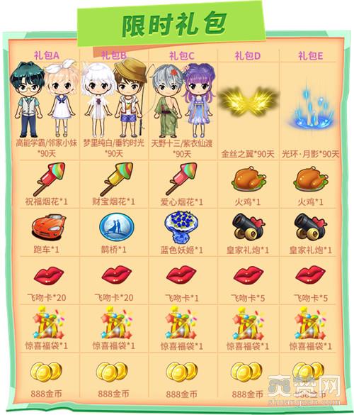 2. 每种礼包售价888金币,礼包内物品不绑定;