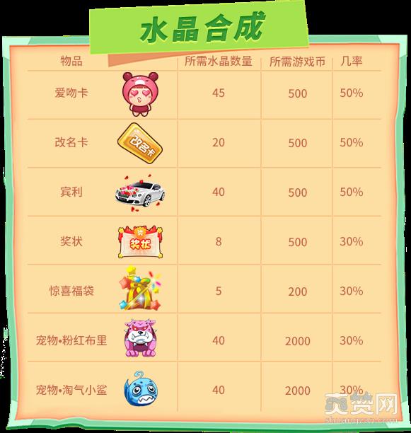 充满魔力的水晶在阳光下散发着诱人的光泽,令无数人为它着迷。在活动期间,所有玩家可前往“合成”系统,使用水晶合成以下物品: