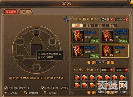 923yx《武动苍穹》中的同一件装备上同类宝石只能镶嵌一颗,镶嵌前需要先进行开孔。开孔需要消耗金刚钻,材料不足时可通过消耗铜钱购买。成功开孔后即可双击或拖拽宝石到界面左半边镶嵌该孔,若双击或拖拽已镶嵌的宝石到界面右半边,则摘除该宝石。