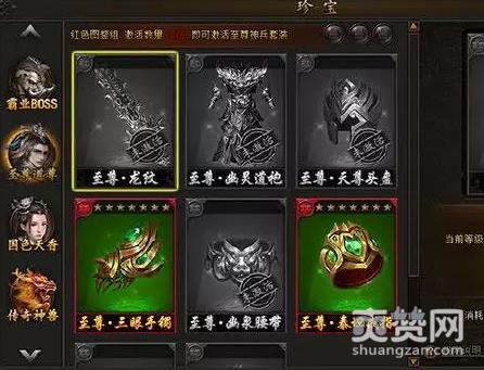 在萝卜玩《传奇霸业》中,玩家可点击珍宝图标打开图鉴系统界面。图鉴分为霸业BOSS、至尊道尊、国色天香和传奇神兽共4个大类;图鉴卡分为金色、红色、橙色、紫色、蓝色和绿色六种品质,品质越高,激活后获得的属性越强。