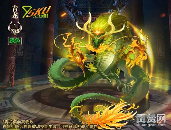 游戏中,青龙神兽的7个技能分别为:借刀杀人、浴血奋战、以战养战、一剑封喉、后发制人、万夫莫开、撕裂爪击。作为高物攻类型的神兽,青龙的多个技能