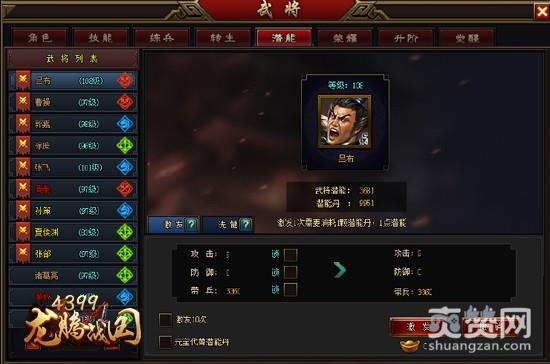 消耗一定的潜能丹对武将潜能进行激发,如果不想激发某个属性可进行勾选即可。