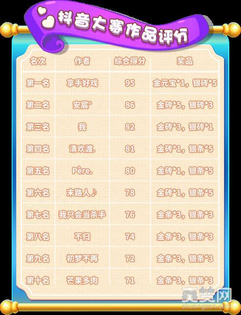 根据参赛期间有效参赛作品的综合评分(点赞量*60%+评论量*20%+转发量*20%)进行排名。“人气”最高的前十名参赛作品: