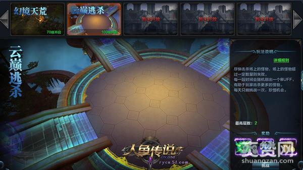 《人鱼传说》有三宝:面具、披风、小火炮,三种装备全部配备齐全,不仅在形象上大大加分,还可以使角色战力大幅提升。想要获得披风首先需要挑战云巅逃杀,它是《人鱼传说》全新推出的针对于披风玩法而生的副本,在100级以上的玩家才可进行挑战。和幻境天荒副本不同的是,云巅逃杀每天只有1次挑战机会,进入场地后会源源不断涌出怪物,若场上超过30只怪时会宣布玩家挑战失败。