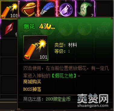 点击主界面右上方每日必做按钮,可以打开打宝地图界面,选择烟花之地,燃放烟花随机进入,烟花可以通过商城购买或者BOSS掉落获得。