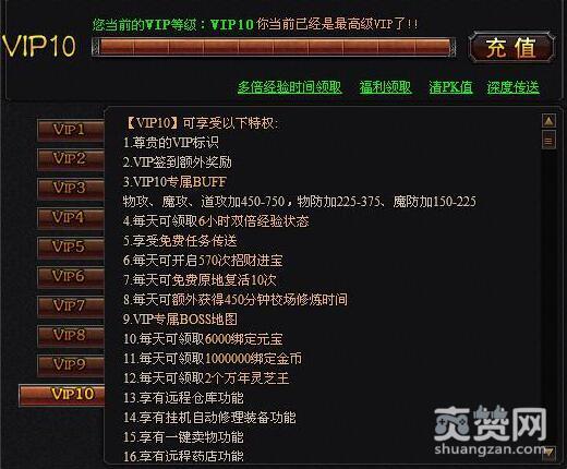 923yx《七杀》中的VIP一共有V1到V10十个等级, 各等级VIP享有各种丰富常规特权。VIP等级会随着大家累计充值数量的增加而成长,VIP等级等级越高,可享受到的VIP特权越高。VIP还有专属VIP状态BUFF,可以增加攻击和物理、魔法防御值。
