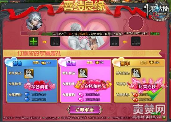 在没有结婚之前,点击姻缘爱心图标会跳转到这个选择求婚规格的喜结良缘界面。