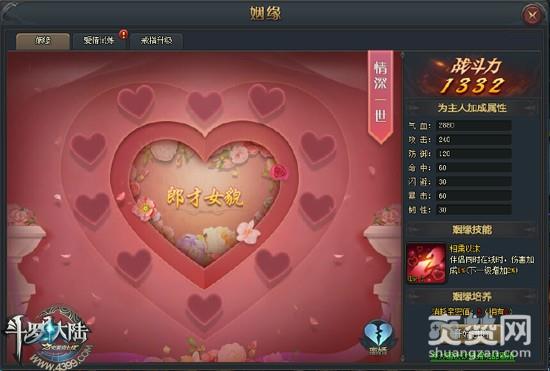 在人物界面上可以看到一个爱心图标,那便是《4399斗罗大陆》姻缘系统。