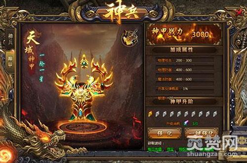 接下来说的则是神甲,神甲是一件防御装备,每次升级出来会获得少量的攻击加成外还会获得大量的防御属性加成,除了属性加成外,每次升级也会获得稀有的伤害反弹概率属性和敏捷属性加成。伤害反弹可以在危机时刻救你一命,而敏捷则会让你的闪避攻击的能力大幅度提升,让你在PK中更具有优势!