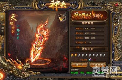 首先我们来说说神兵,神兵是这个系统中的攻击装备,作为一个攻击装备,它的攻击属性成长很高,每次升级都会获得大量的攻击属性,除了基础的攻击属性外还有稀有的无视防御几率和准确的加成,无视防御这个属性可以让你在PK时攻击更具有威胁,一击秒杀也不是梦,而准确属性则会保证你的攻击不会落空!神兵除了强大的能力外,获得的方式也是非常亲民的,只需要一个1元首充就可以轻轻松松的获得它!
