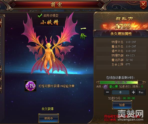 我们8090的猛将天下开局就为各位小伙伴们精心准备了一只萌宠小妖精,全程陪伴主人身边,不光可以为主人增加各种属性,还可以让主人打怪的是时候获得额外的经验加成哦。