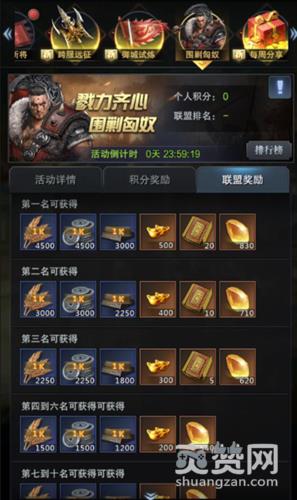 各位主公及联盟想要在围剿匈奴活动中获取胜利,需要盟友之间通力合作,合理排兵布阵。盟主开启活动之前,联盟成员可以在附近建造城寨,攻打匈奴散兵。散兵与南蛮类似,需要大量兵力集结击杀,击杀散兵等级越高,获得的积分越高。其次,主公可根据自身能力,分组对八个阵眼进行援防,每个阵营同时最多只能援防八个部队。围剿成功后,剩余的阵眼数量越多,联盟成员将会获得越丰厚的防守成功奖励。并且个人还可凭借积分兑换奖励,联盟则有机会获得联盟排名奖励,包括数量不等的银粮铁矿,元宝,天赋经验书和宝石等丰厚内容!