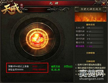 要想赢战斗,还得看战力。在萝卜玩《天威传说》中,元神系统作为增强战力的捷径之一,尤为引人关注。玩家可以通过主界面下方的元神按钮进入元神界面。玩家满足“穿戴8件40级以上装备”和“绑定金币500000”两个条件即可激活元神系统。其中40级以上装备可通过幽冥圣域、世界BOSS活动获得,绑定金币可通过摇钱树活动获得。