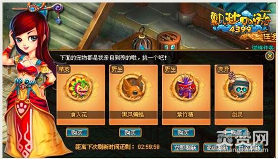 普通刷新:等级到达25级之后,每3个小时刷新一次,即可购买一次宠物,普通的购买形式遇到宝宝的几率较低,当然遇到变异宝宝的几率就更低了。