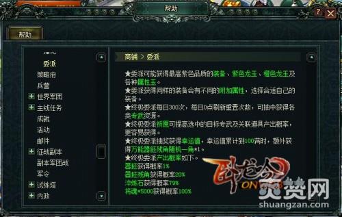 《卧龙吟》中的委派系统曾经是玩家获取装备的重要途径,分为银币委派、金币委派。委派可能获得最高紫色品质的装备、紫色龙玉、橙色龙玉以及各种属性玉。那么终极委派会获得什么呢?