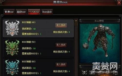 如果要问923yx《七杀》中什么应有尽有,可能是各种活动副本吧。不过,今天要说的不是这些,而是923yx《七杀》中的个人BOSS。923yx《七杀》中的个人BOSS可谓是应有尽有,40级的、50级的、60级的,只要击杀都可获得大量道具奖励!