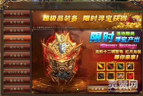 庆典活动是月末活动的必备节目了,当日充值20元即送一把寻宝钥匙,不设上限。还有各种绝版时装返场等你来寻。本次庆典活动,产出最新上线的4把兵魂武器,超强属性不能错过。还有非常受欢迎的boss大挑战活动,PK打架,抢怪杀人,还有9转武器爆,运气好的人一小时能赚好几千元宝,简直是发家致富新方法。