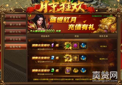 盼望着盼望着,时间又到了一月一次的《红月传说》月末狂欢盛宴了。不少小伙伴攒了小半月的元宝,又可以拿来开心一下了。高额的消耗返利,寻宝转盘,好友终极消耗活动“我是传奇”,让你1000元宝花出3000元宝的效果,两个字“划算”!下面来看看本次月末活动有什么亮点吧~