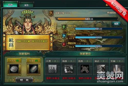 在8090大大争霸中有国才有家所以当大家达到一定等级的时候就可以选择不同的国家了哦,一共有吴蜀魏汉四个国家可以选择哦,当加入任意一个国家之后与其他的国家就形成敌对了哦。