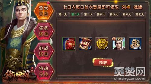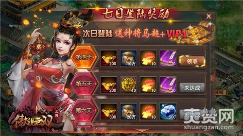 对于刚建立国土的主公来说获取物资是非常重要的一项任务,那么最快活去物资的地方便是签到和登录奖励。首先说下登录奖励,在开始界面中,点击登录,会弹出“七日登录奖励”的面板,会给予主公元宝、粮草、吴子(武将升级经验的道具)、精良万能碎片(武将升星和升级天赋使用)、虎符(用于城战复活武将)等,登录第二天就会赠送VIP1和S级武将马超,绝对不能错过鸭!