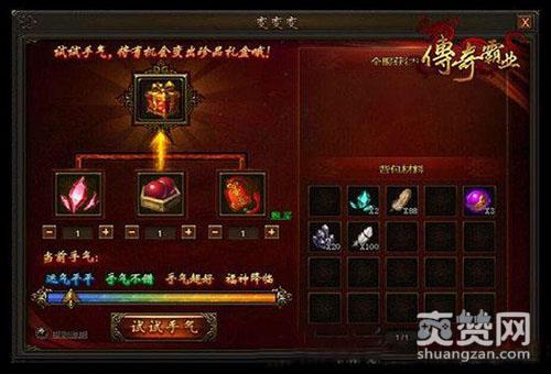 萝卜玩《传奇霸业》玩家使用冗余道具参与百变戏玩法,即有概率获得戏法宝箱,可开出指定道具。参与的道具价值越高,戏法宝箱也越好。如果不相信自己的手气,使用幸运符就能大大提高成功率。
