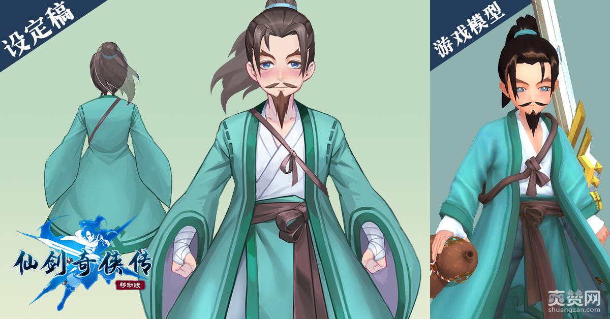 《仙剑奇侠传移动版》中的酒剑仙变化很大。青衫磊落的“仙气”突显出来,年龄感被弱化掉。面部细节上清晰可见酒气红晕,眼神闲逸淡定。一个不走寻常路的帅大叔,像个微妙的矛盾结合体,瞬间让人眼前一亮。
