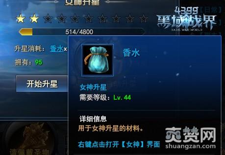女神升星需要消耗“香水”。使用香水可升星女神,当女神升星数量达到满值时,女神将进入进阶状态。