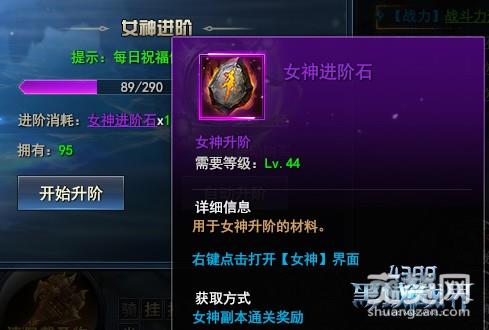 女神进阶需要消耗“女神进阶石”。使用女神进阶石进阶女神,当祝福值达到满值时,女神将进到下一阶。