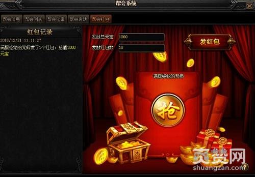在923yx《霸王之心》的帮会中,帮主或副帮主还可在帮会列表中选择其他帮会进行宣战,帮会成员则可以使用帮会贡献值在帮会仓库中共享装备。除此之外,大家也可在帮会面板的帮会红包页面发红包或抢红包,活跃帮会气氛。