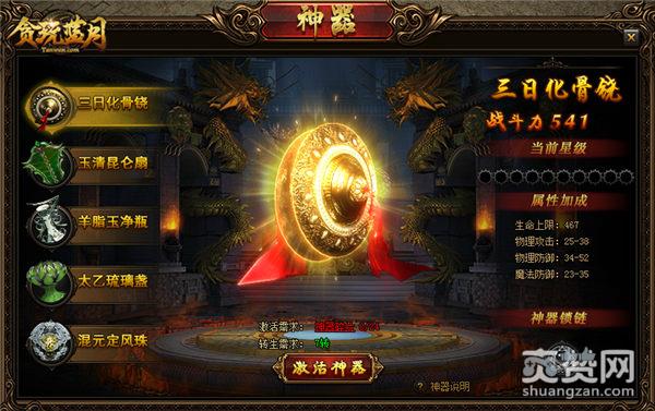 神器随角色转生等级而开放,当转生等级达到需求时,可消耗“神器碎片”激活神器,获得相应属性,属性对角色和英雄均生效。