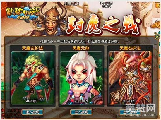 每周六15点至22点开放封魔之战,20点开始刷新大量魔军战将,玩家可点击“魔”字进入进行封魔。